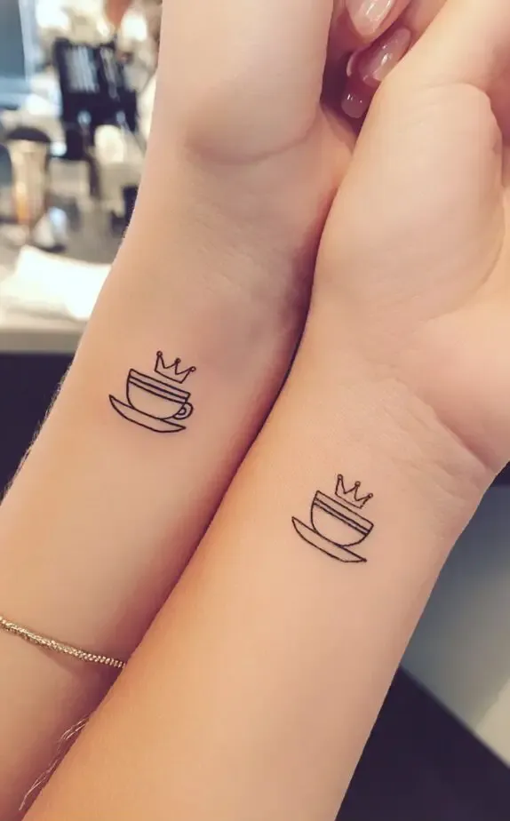 For best friends who share a deep love for coffee, tiny coffee cup tattoos make a perfect symbol of their bond.