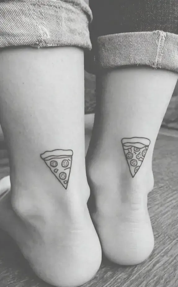 Small pizza slice tattoos make a delightful choice for best friends who share a passion for delicious food and memorable dining moments.