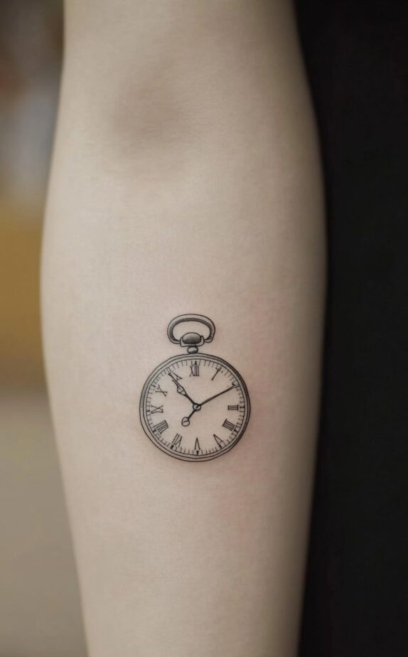 A pocket watch tattoo signifies the preciousness of time, serving as a reminder to cherish every moment. The intricate details in this design make it a standout piece, despite its small size.