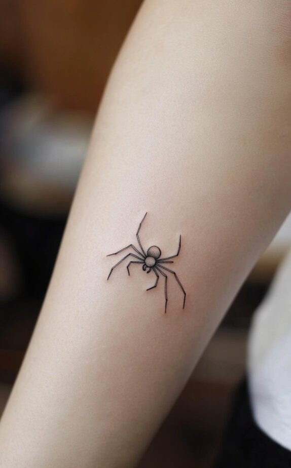 This tiny spider tattoo on the arm conveys creativity and patience. Spiders weave intricate webs, symbolizing persistence and artistry.