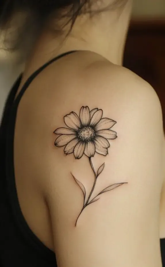 Its petite size makes it ideal for placement on the forearm, wrist, or ankle. The fine details in the petals and leaves give it a graceful appearance, making it a meaningful choice for nature lovers and optimists alike.