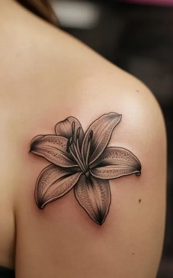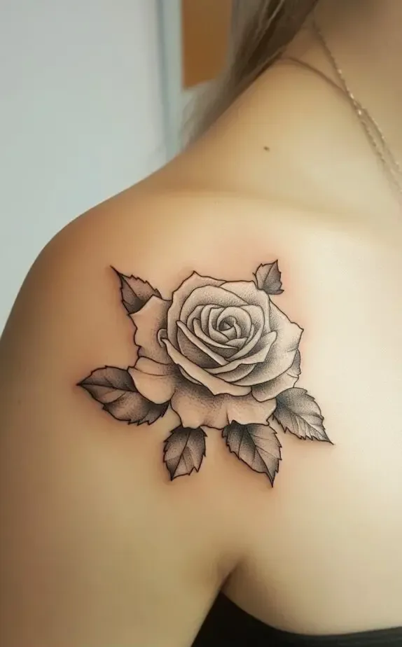 Its medium size and placement on the shoulder make it an eye-catching yet delicate piece. It s an excellent choice for someone who wants to showcase their artistic side and strength.
