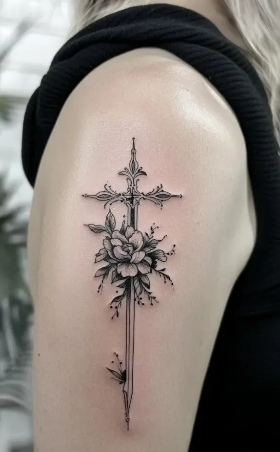 This elegant design combines a cross and angel wings, symbolizing faith and freedom. It s a meaningful choice for those who value spirituality and protection.