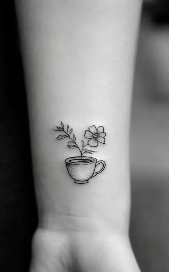 This quirky tattoo combines the love for coffee and nature. It s a charming representation of everyday joys and simple pleasures.