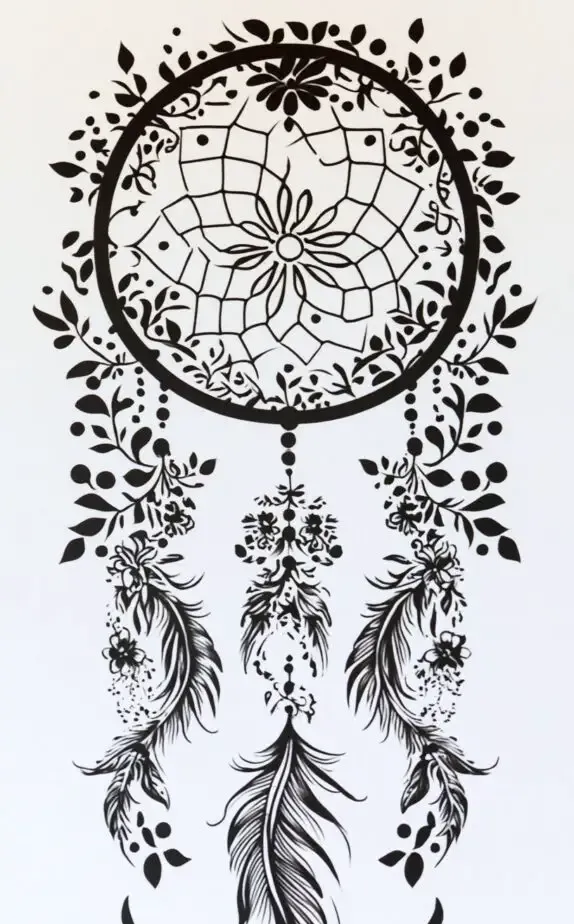 This dreamcatcher tattoo drawing is a timeless symbol of protection and positive energy. With floral accents woven into the design, this piece gains a softer, more feminine touch. Dreamcatchers are traditionally used to ward off bad dreams, and this tattoo can be a constant reminder of personal resilience. Ideal for women who want a meaningful tattoo with a touch of Native American inspiration.