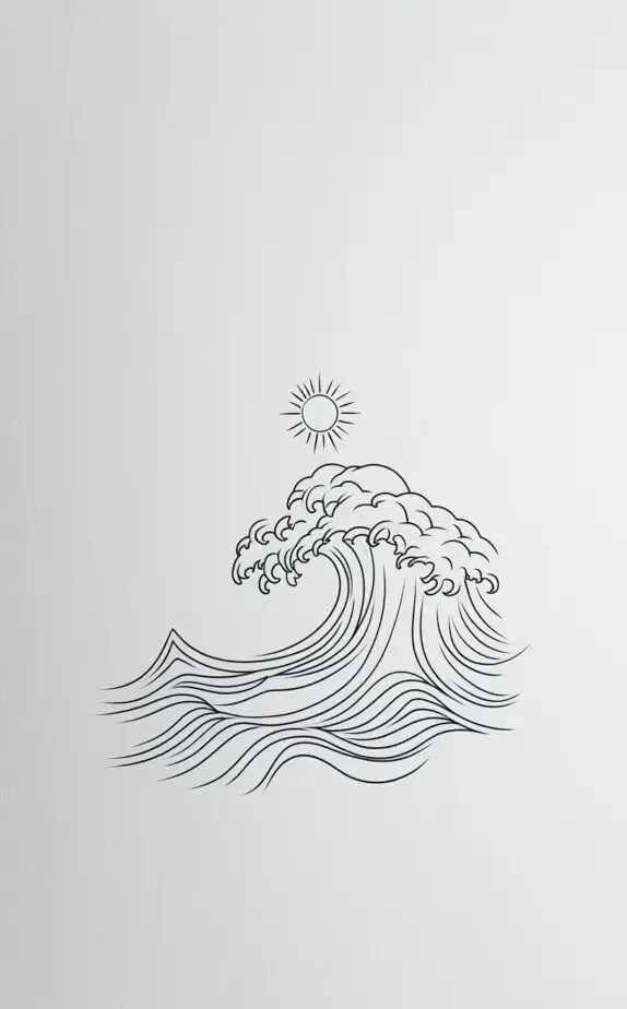 This wave tattoo represents strength, movement, and the enduring nature of the ocean. Simple yet impactful, the flowing lines depict the vastness of the sea and its connection to freedom and adventure. It s a beautiful choice for anyone with a love for water or a free-spirited nature.
