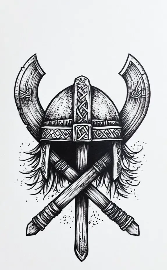 The Viking helmet and crossed axes tattoo embodies strength, bravery, and a warrior s honor. The detailed etchings on the helmet and axes add authenticity, harkening back to ancient Norse traditions. This tattoo is perfect for men who resonate with the Viking spirit and value courage and loyalty. It s a bold and symbolic design that pays homage to the resilience and fearlessness of the Viking culture.