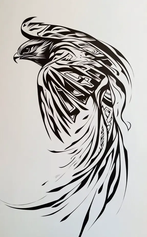 The soaring eagle tattoo captures the grace and strength of this majestic bird. With detailed wings and fierce eyes, the eagle represents freedom, courage, and wisdom. The bold lines of this drawing emphasize the dynamic movement of the eagle, making it appear as though it s in flight. This design is perfect for those who value independence and seek to embody the eagle s fearless spirit, creating a powerful statement of resilience and strength.