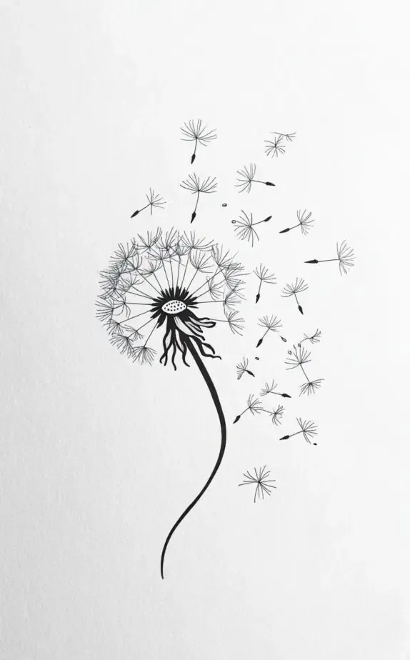 A dandelion tattoo is a symbol of hope, dreams, and freedom. The gentle seeds drifting away create a sense of release and optimism. This design is perfect for those who wish to capture the fleeting beauty of life and the joy of following one s dreams, ideal for a subtle wrist or collarbone tattoo.