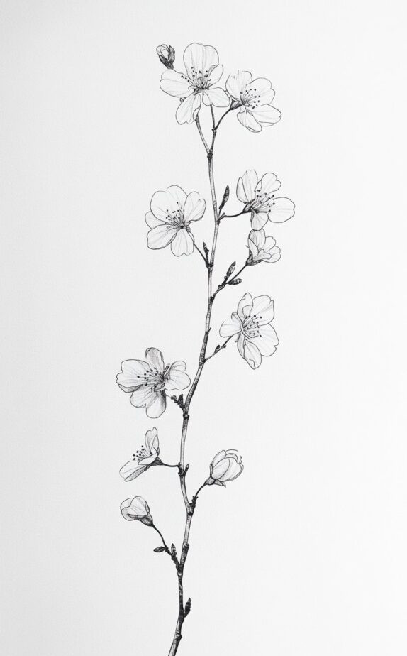 The cherry blossom branch tattoo symbolizes the beauty and fragility of life. This delicate drawing captures the ephemeral nature of cherry blossoms, making it a poetic choice for those who value living in the moment. Cherry blossoms are also associated with renewal and transformation. With its fine lines and minimalistic design, this tattoo would be a subtle yet beautiful addition to the wrist or ankle.