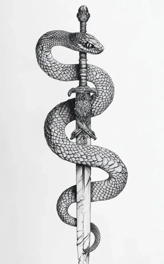 Combining a sword and a snake creates a tattoo rich with symbolism. The sword represents courage, protection, and valor, while the snake adds a layer of transformation and knowledge. This design wraps the snake elegantly around the sword, creating a dynamic balance between defense and wisdom. It s a great tattoo choice for men who value resilience and intellect in their life journey.