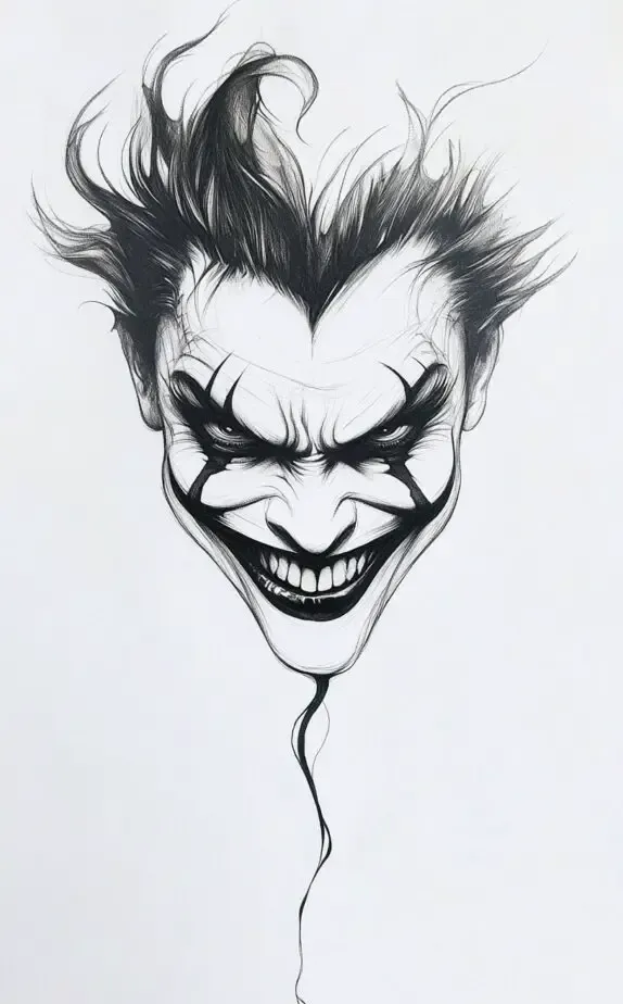 For those who enjoy darker themes, this Joker tattoo is a perfect representation of mischief and unpredictability. The twisted smile and intense eyes capture the essence of chaos, making it a bold statement for anyone who embraces their rebellious side. This design appeals to men who want a striking and intense piece that stands out and reflects a daring personality.