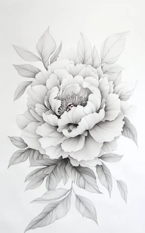 The peony flower symbolizes romance, prosperity, and grace. This elegant design with layered petals captures the flower s fullness and softness. It s ideal for a statement piece on the shoulder or back, reflecting beauty and femininity with its intricate details.