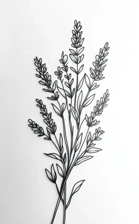 Lavender tattoos symbolize calmness, grace, and purity. This simple yet elegant bouquet design captures the essence of tranquility and natural beauty. The delicate lines of the lavender stalks make it ideal for a minimalist tattoo on the wrist or forearm, giving a touch of serenity to any look.