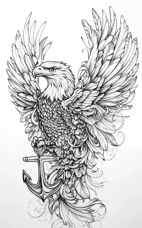 The eagle, a symbol of freedom and strength, combined with an anchor, brings a balance of stability and independence. This tattoo design highlights the eagle s powerful wings and the intricate details of the anchor, symbolizing a person who values freedom but is also grounded. It s an ideal choice for those who have a strong sense of self and value loyalty in their relationships.