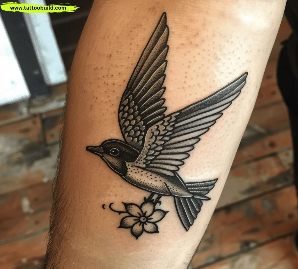 Check out some of these cool black and gray traditional Swallow tattoo ideas below.
