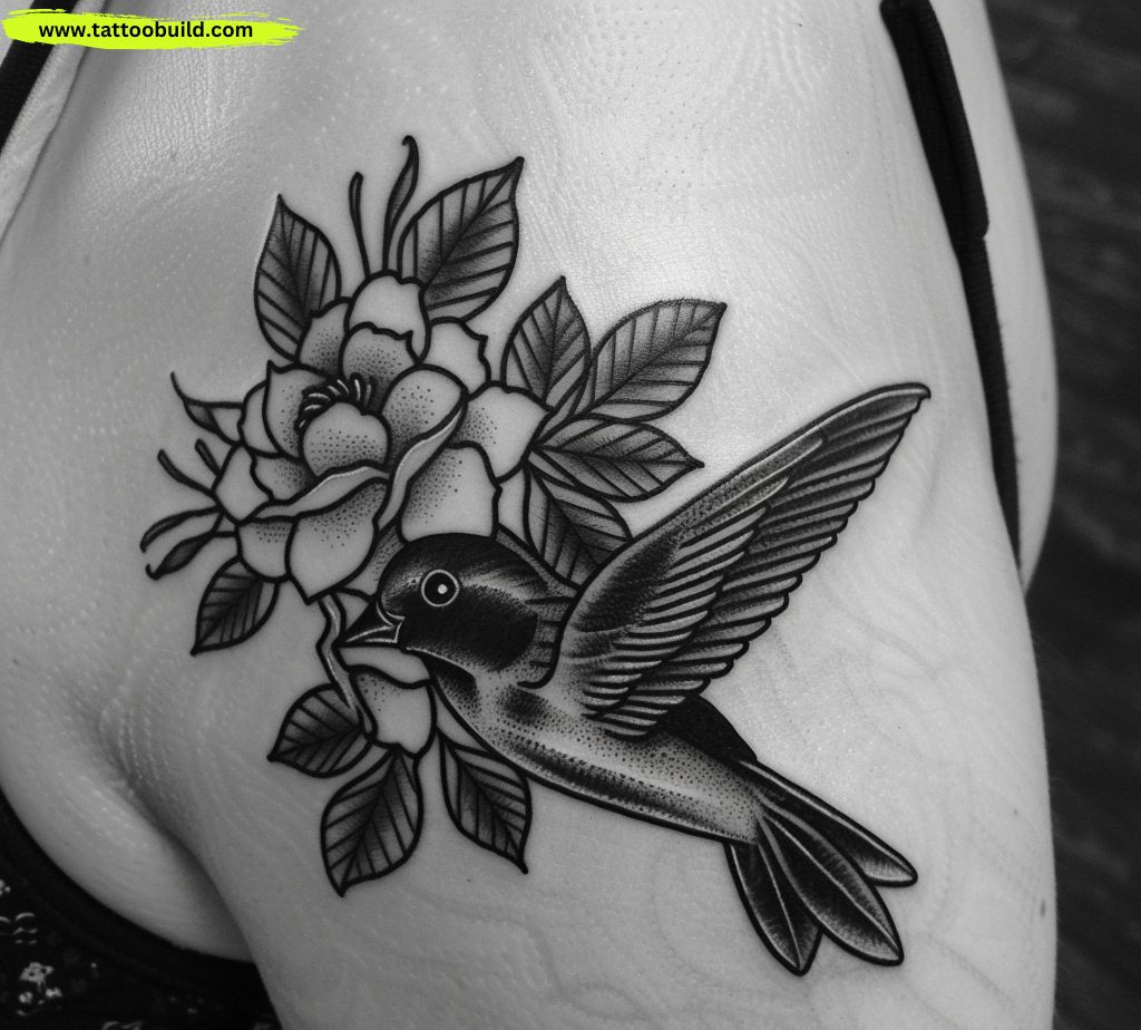 In traditional tattoo art, the swallow is often depicted in flight, with its wings outstretched and its body gracefully arched. The black and white color scheme typically employed in these tattoos adds to their timeless appeal and classic aesthetic.
