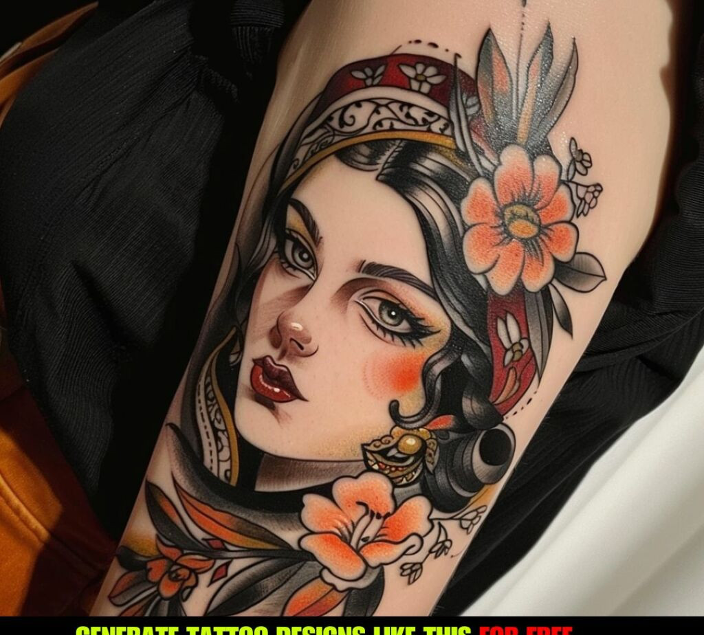 These tattoos often depict Victorian-era ladies, flappers from the Roaring Twenties, or iconic figures from classic cinema and literature.