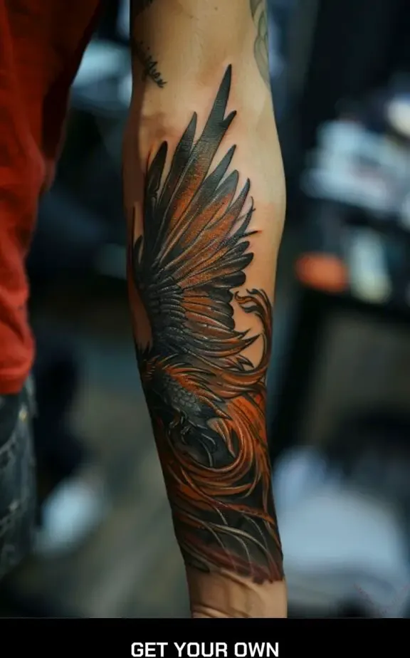 Phoenix wings symbolize rebirth, resilience, and immortality. These tattoos often feature fiery colors and dynamic designs, capturing the essence of the mythical bird rising from its ashes.